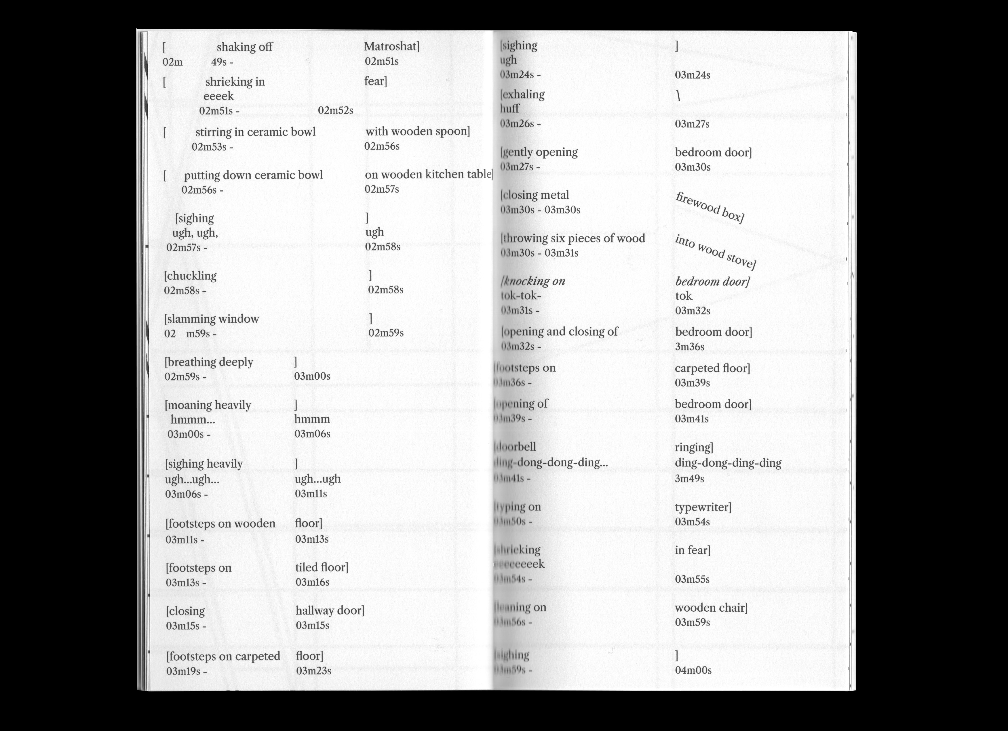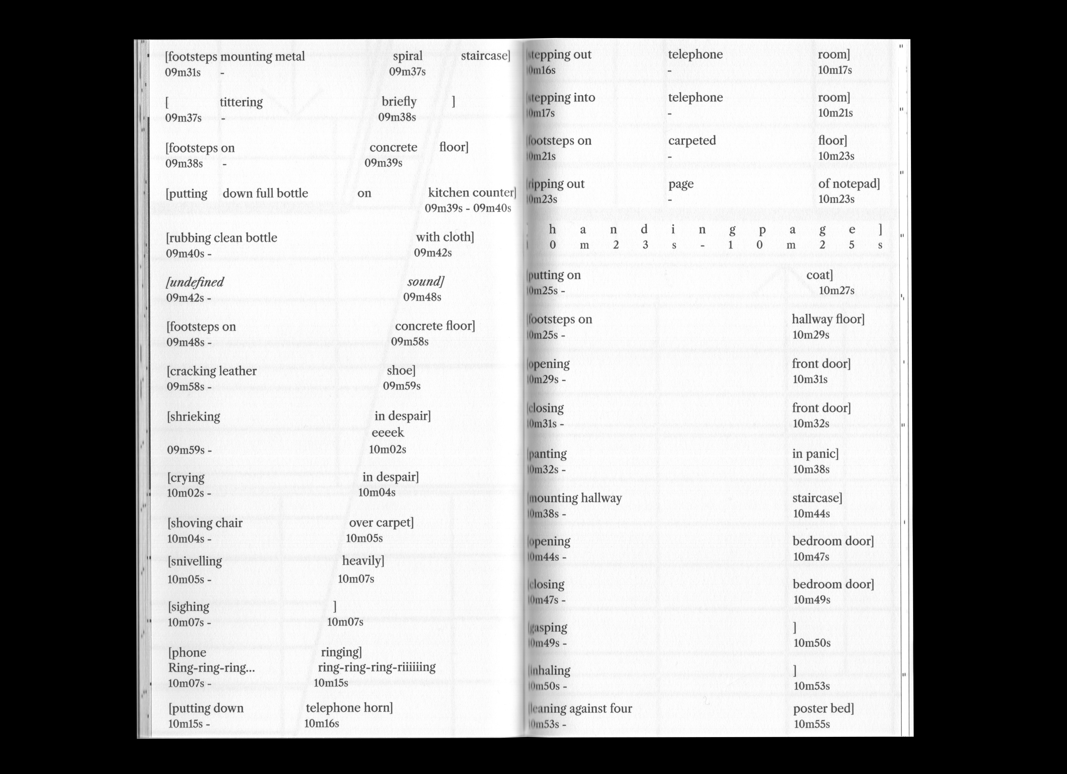 The publication a Score for a case of stairs transcribes this choreography of sound into text, its spacing and design inscribed upon the museum’s floorplan. Reading becomes an act of walking; the page, a topography of listening.